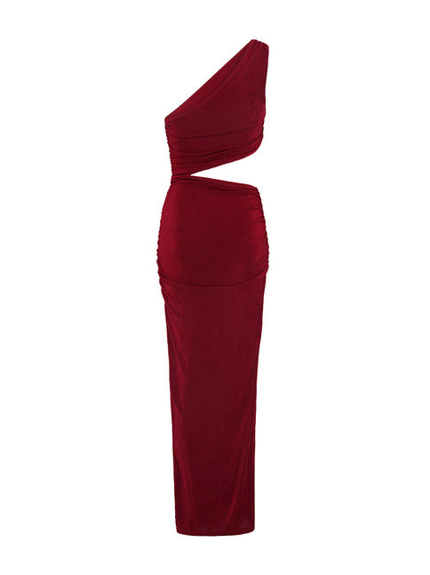 Our Ana cut-out maxi dress is an elevated evolution of our popular Anastasia dress. A timeless red silhouette with a modern edge – there’s just something so captivating about red. Ana is designed with an asymmetric neckline and sculpting side gathers, perfectly contouring the body with elegance. Ana’s cut-out detailing adds just the right amount of allure, while her soft, shimmery fabric hugs beautifully offering a premium finish.